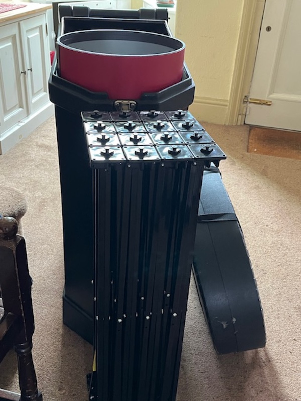 Wheelie storage case that doubles as plinth stand utilising a magnetic panel, lid and base
